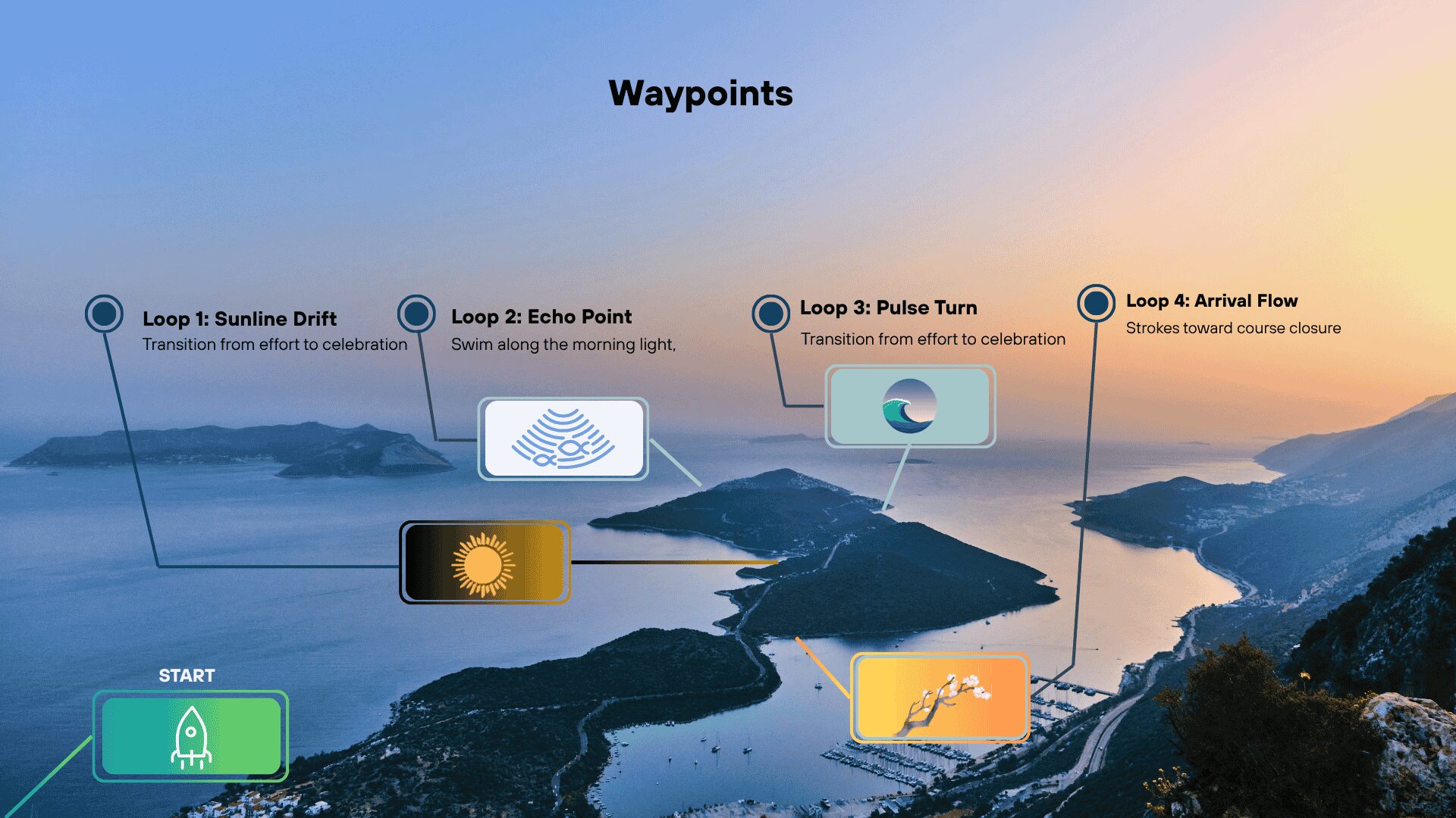 Navigate the Kaş Peninsula’s breathtaking waters on a secure 12‑kilometer route designed for rhythm and transformation. Waypoints embedded into the course image guide swimmers through each symbolic loop.